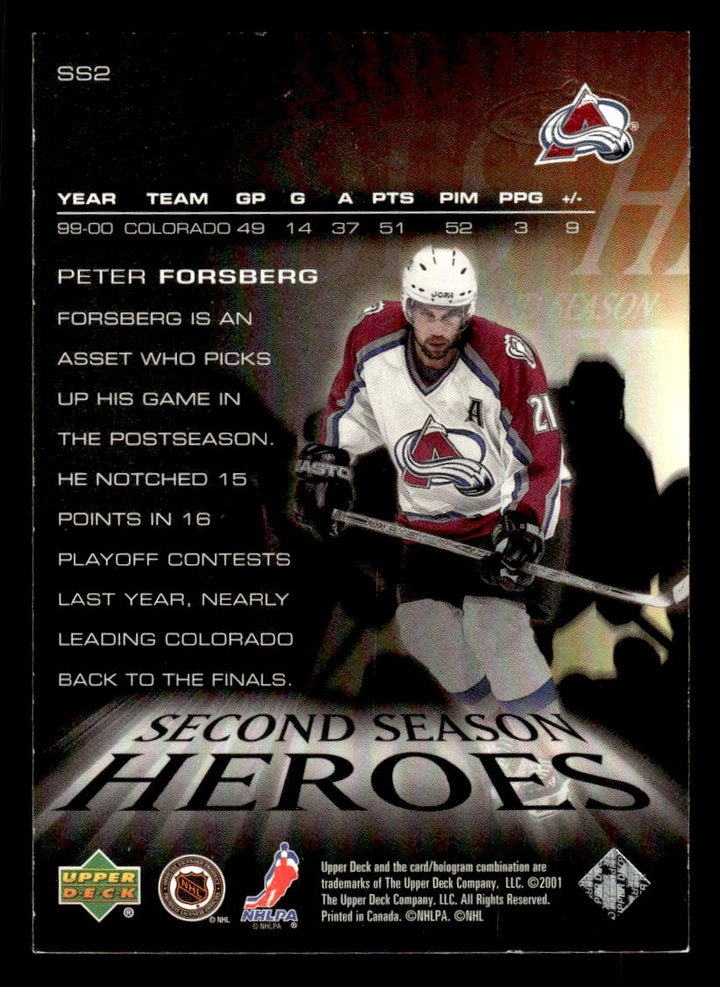 2000 UPPER DECK HEROES PETER FORSBERG SS2 MINT SECOND SEASON HEROES AVALANCHE