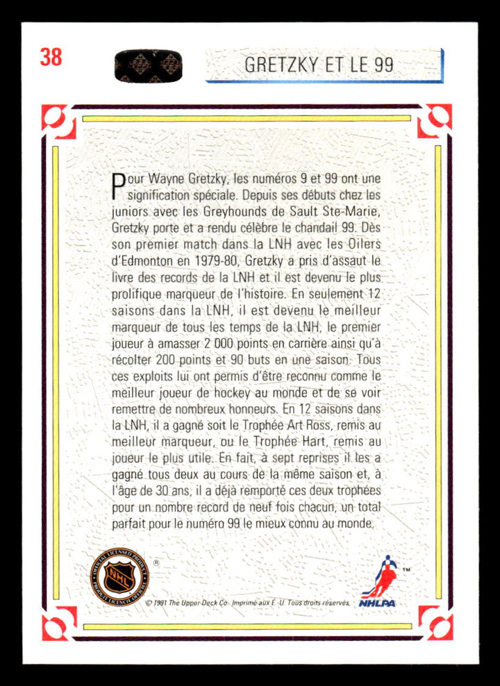 1991 UPPER DECK FRENCH WAYNE GRETZKY 38b MINT GRETZKY ET LE 99 EDMONTON OILERS