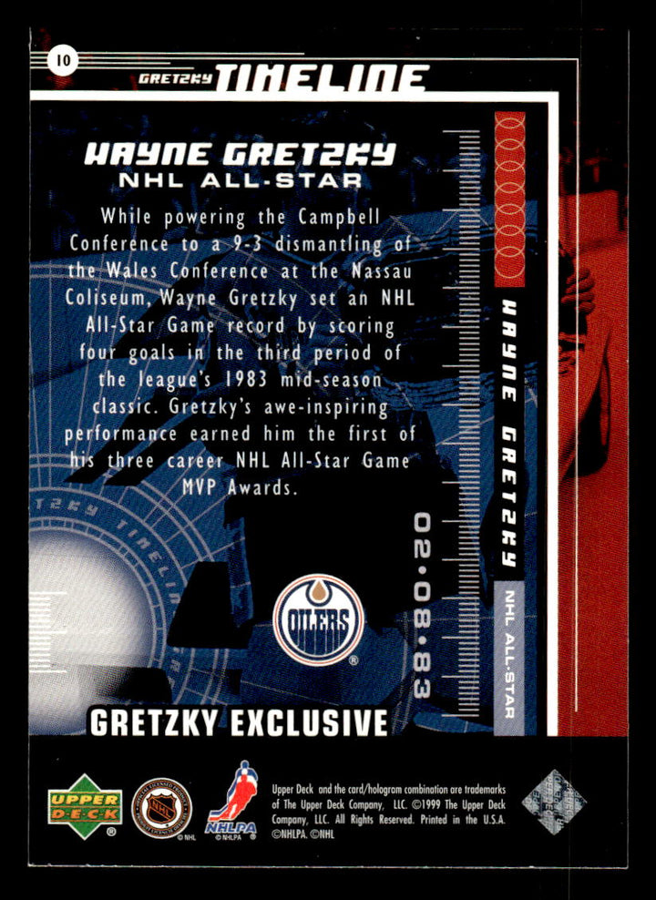 1999 UPPER DECK WAYNE GRETZKY 10 MINT GRETZKY EXCLUSIVES HOCKEY EDMONTON OILERS