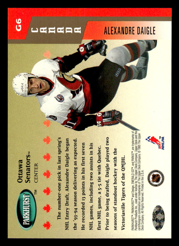 1993 PARKHURST ALEXANDRE DAIGLE G6 MINT USA / CANADA GOLD HOCKEY OTTAWA SENATORS