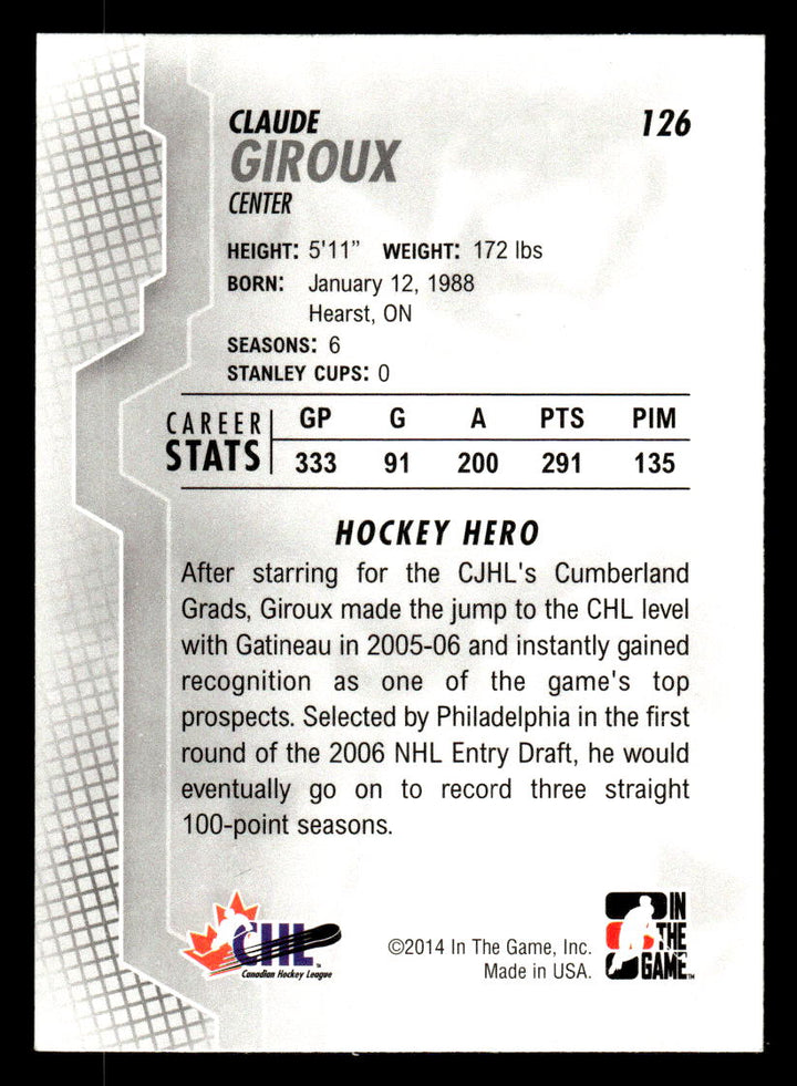 2013 IN THE GAME HEROES AND PROSPECTS CLAUDE GIROUX 126 MINT GATINEAU OLYMPIQUES