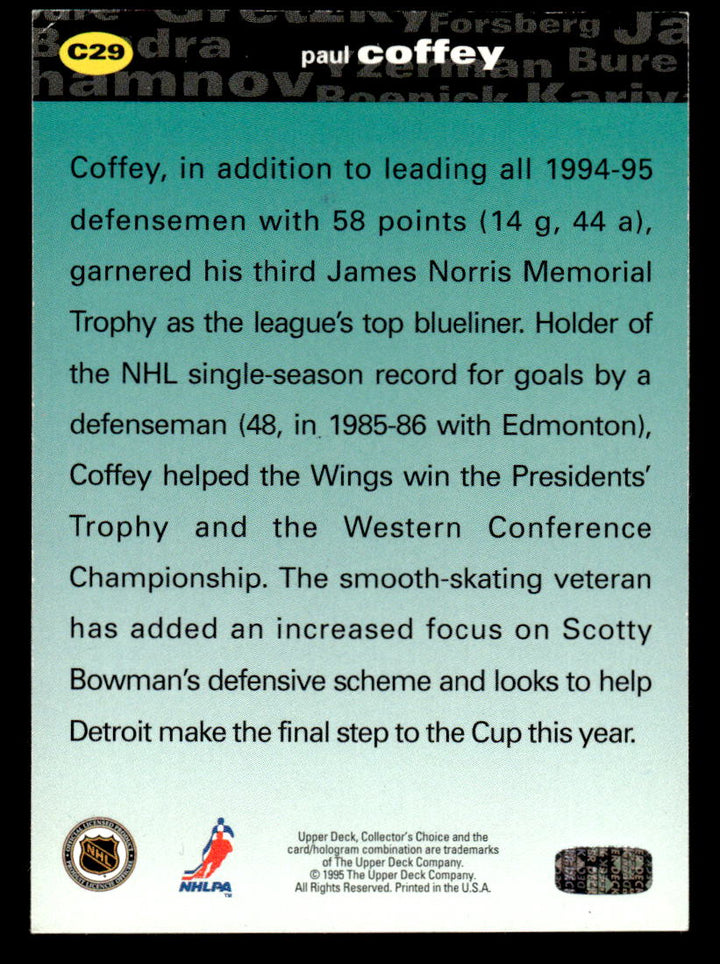 1995 COLLECTOR'S CHOICE PAUL COFFEY C29 YOU CRASH GAME SILVER EXCHANGE RED WINGS