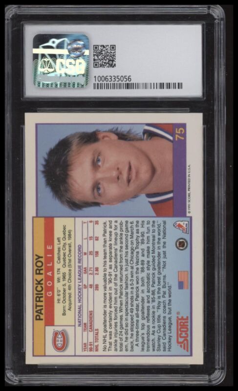 1991 SCORE AMERICAN PATRICK ROY 75 MINT CSG 9 HOCKEY MONTREAL CANADIENS