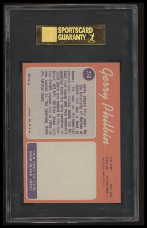 1970 TOPPS GERRY PHILBIN 226 MINT SGC 9 FOOTBALL NEW YORK JETS