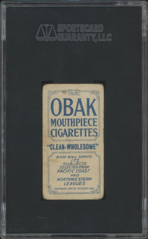 1909 T212 JESSE ORENDORFF NNO FAIR OBAK BLUE SGC 1.5 BASEBALL LOS ANGELES ANGELS