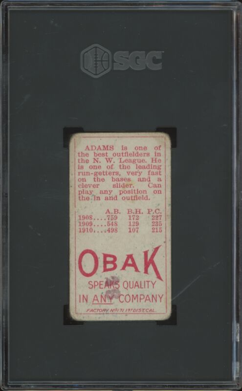 1909 T212 JIMMY ADAMS NNO FAIR OBAK SGC 1.5 BASEBALL VANCOUVER BEAVERS