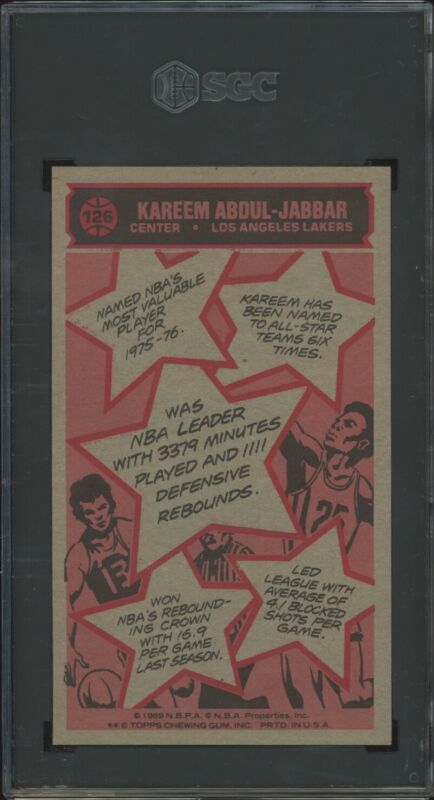 1976 TOPPS KAREEM ABDUL-JABBAR 126 NRMT ALL STAR SGC 7 LOS ANGELES LAKERS