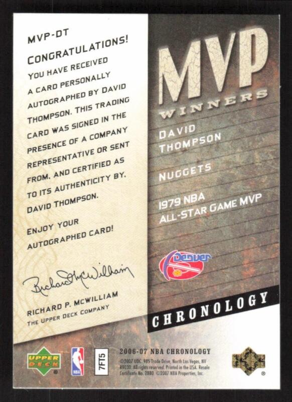 2006 UD CHRONOLOGY DAVID THOMPSON MVP-DT NRMT MVP AUTOGRAPH 28/50 DENVER NUGGETS