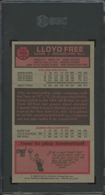 1976 TOPPS LLOYD FREE 143 NRMT RC SGC 7 BASKETBALL PHILADELPHIA 76ERS
