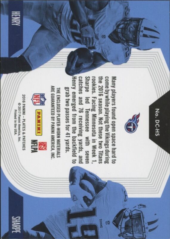 2016 PLATES & PATCHES DERRICK HENRY DC-HS MT RC TAJAE SHARPE DOUBLE 41/50 TITANS
