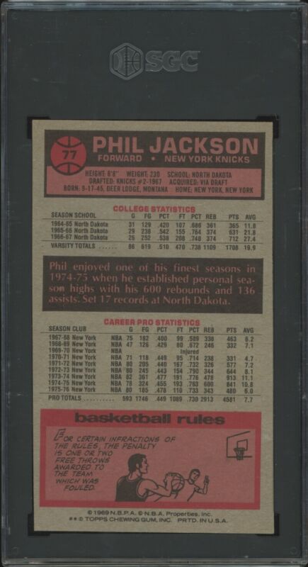 1976 TOPPS PHIL JACKSON 77 EX+ SGC 5.5 BASKETBALL NEW YORK KNICKS