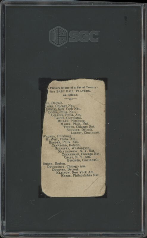 1909 E102 SHERRY MAGEE NNO POOR SGC A BASEBALL PHILADELPHIA PHILLIES