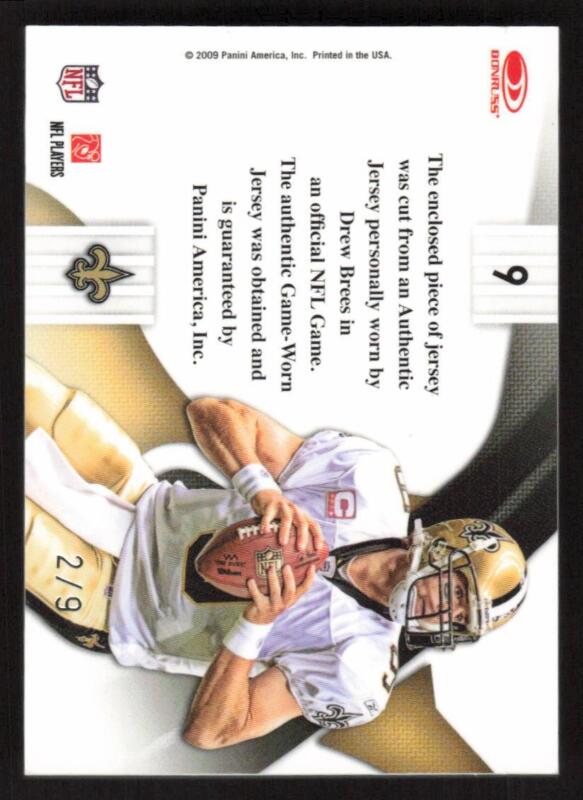 2009 NATIONAL TREASURES DREW BREES 9 MATERIALS JERSEY NUMBERS PRIME 2/9 SAINTS