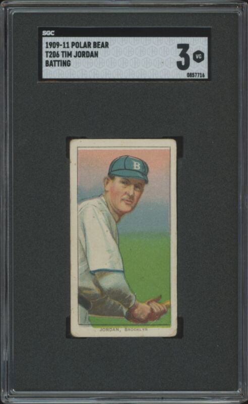 1909 T206 TIM JORDAN NNO VG BATTING POLAR BEAR SGC 3 BASEBALL BROOKLYN SUPERBAS