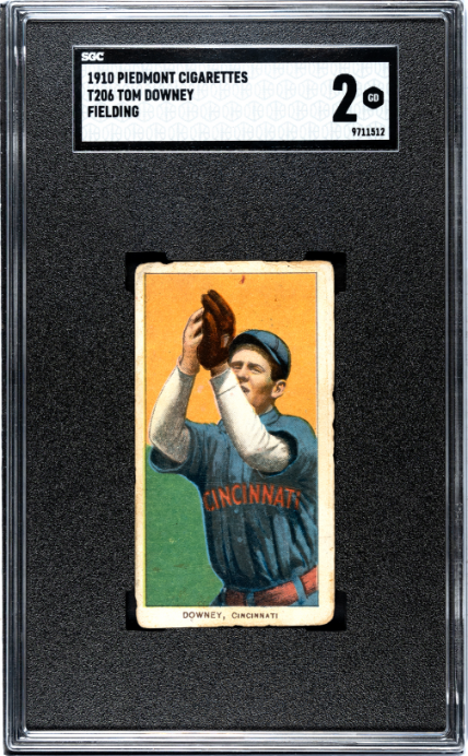 1909 T206 TOM DOWNEY NNO GOOD PIEDMONT 350 FIELDING SGC 2 CINCINNATI REDS