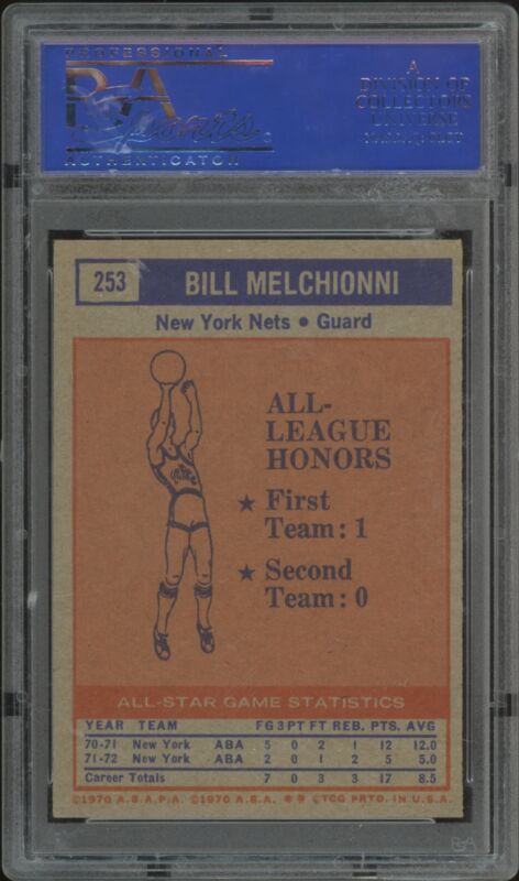 1972 TOPPS BILL MELCHIONNI 253 EXMT AS PSA 6 BASKETBALL NEW YORK NETS