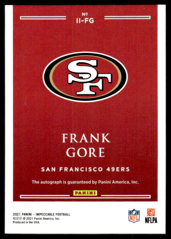 This FRANK GORE, from the 2021 PANINI IMPECCABLE set, is in MINT condition.