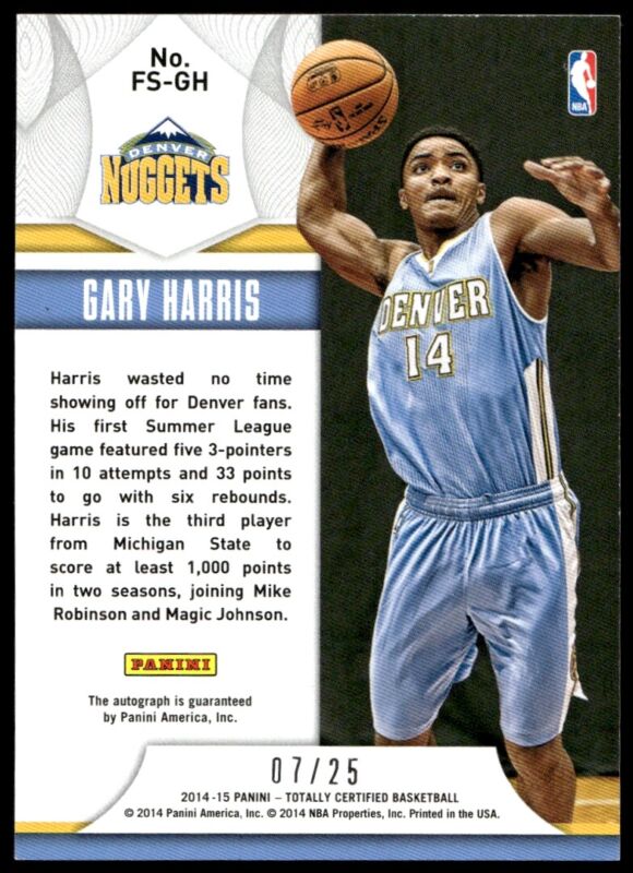This GARY HARRIS, from the 2014 PANINI TOTALLY CERTIFIED set, is in MINT condition.