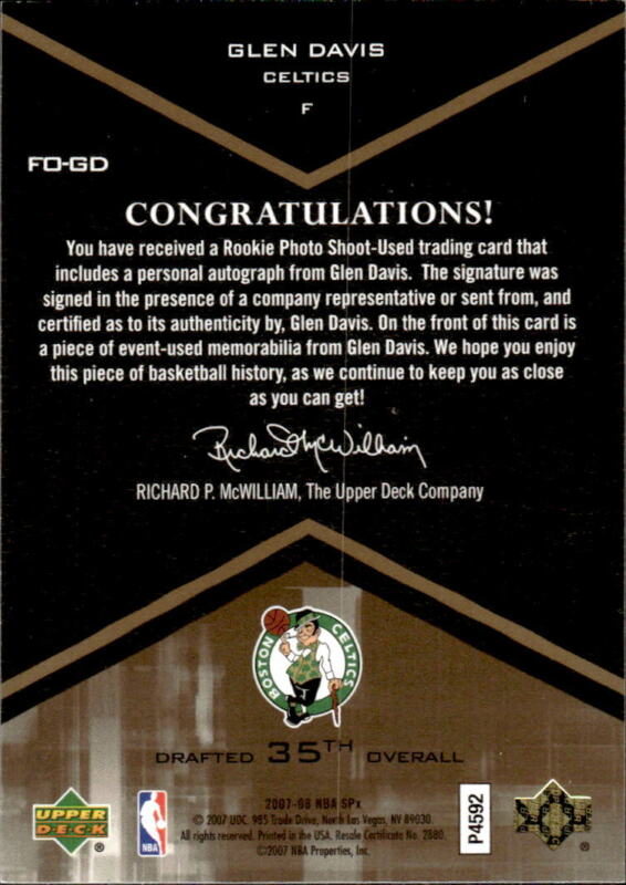 2007 SPX GLEN DAVIS FO-GD FRESHMAN ORIENTATION AUTOGRAPHS 7/50 BOSTON CELTICS