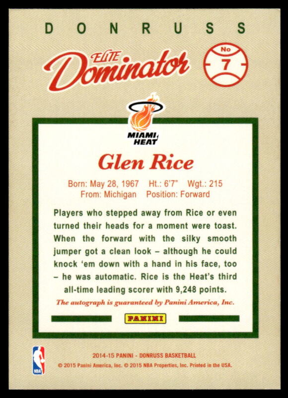 2014 PANINI HALL OF FAME GLEN RICE 7 ELITE DOMINATOR GREEN AUTOGRAPH 14/50 HEAT