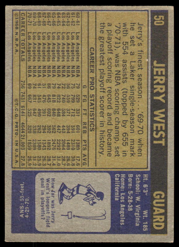 1971 TOPPS JERRY WEST 50 VG-EX BASKETBALL LOS ANGELES LAKERS