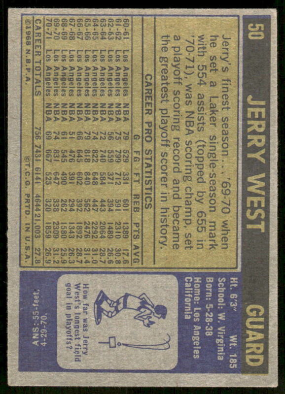 1971 TOPPS JERRY WEST 50 EX BASKETBALL LOS ANGELES LAKERS