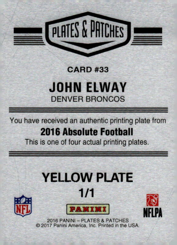 2016 PANINI ABSOLUTE JOHN ELWAY 108 PRINTING PLATES YELLOW 1/1 DENVER BRONCOS