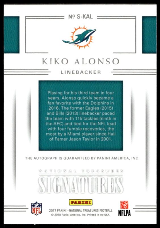 2017 PANINI NATIONAL TREASURES KIKO ALONSO 42 MT SIGNATURES HOLO 3/15 DOLPHINS