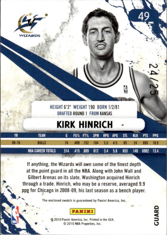 2010 PANINI ROOKIES STARS LONGEVITY KIRK HINRICH 49 LONGEVITY SWATCH /25 WIZARDS