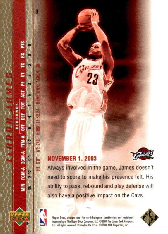 This LEBRON JAMES, from the 2003 UPPER DECK LEBRON JAMES PHENOMENAL BEGINNING set, is in MINT condition.
