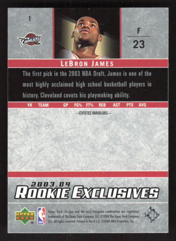2003 UPPER DECK ROOKIE EXCLUSIVES LEBRON JAMES 1 MINT RC CLEVELAND CAVALIERS