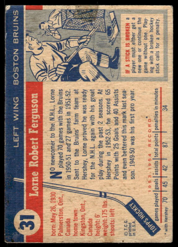 1954 TOPPS LORNE FERGUSON 31 POOR HOCKEY BOSTON BRUINS