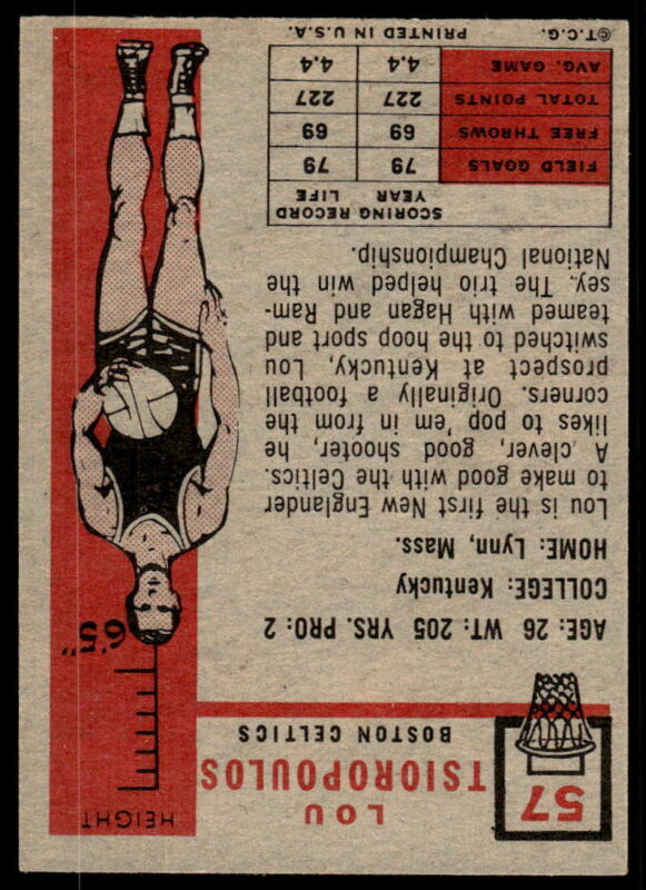 1957 TOPPS LOU TSIOROPOULOS 57 EXMT BASKETBALL BOSTON CELTICS