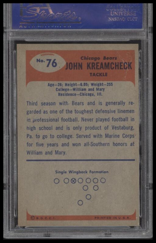 1955 BOWMAN JOHN KREAMCHECK 76 NRMT-MT PSA 8 FOOTBALL CHICAGO BEARS