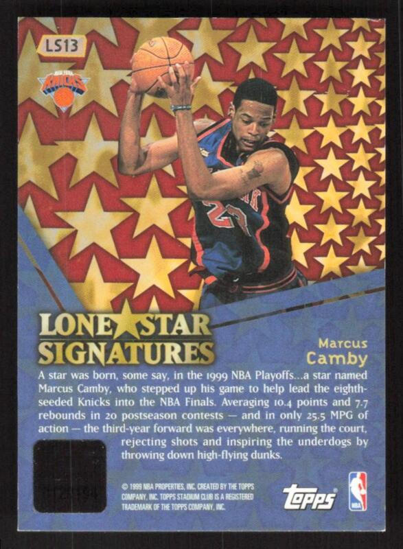 1999 STADIUM CLUB MARCUS CAMBY LS13 LONE STAR SIGNATURES AUTOGRAPH KNICKS