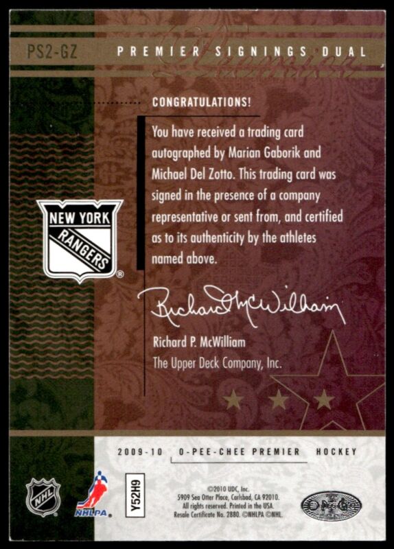 2009 O-PEE-CHEE PREMIER MARIAN GABORIK 76 DUAL SIGNING DEL ZOTTO AUTOGRAPH 25/25