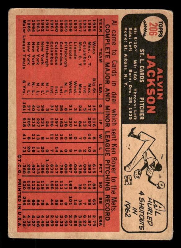1966 TOPPS VENEZUELAN ALVIN JACKSON 206 GOOD BASEBALL ST. LOUIS CARDINALS