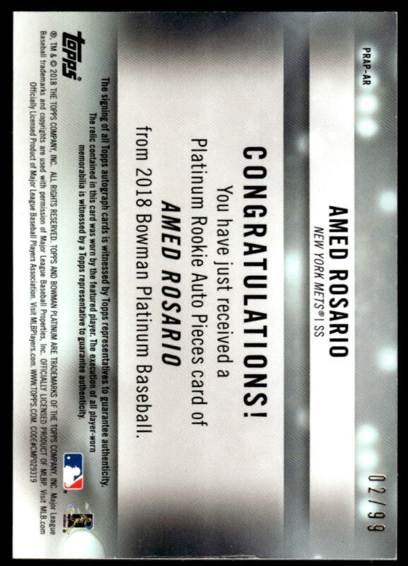 2018 BOWMAN PLATINUM AMED ROSARIO PRAP-AR PLATINUM ROOKIE AUTO PIECES 2/99 METS