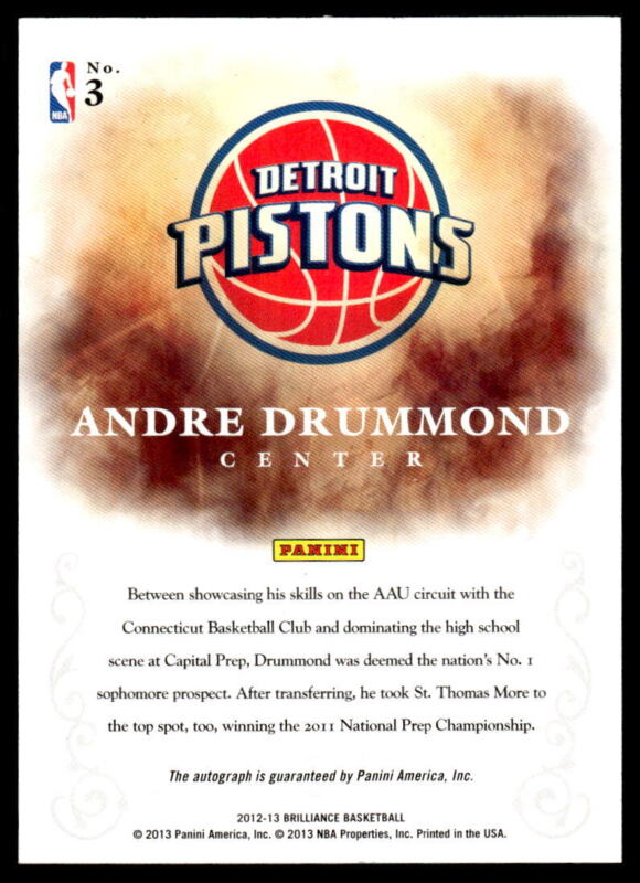 2012 PANINI BRILLIANCE ANDRE DRUMMOND 3 BRILLIANT BEGINNING AUTOGRAPH RC PISTONS