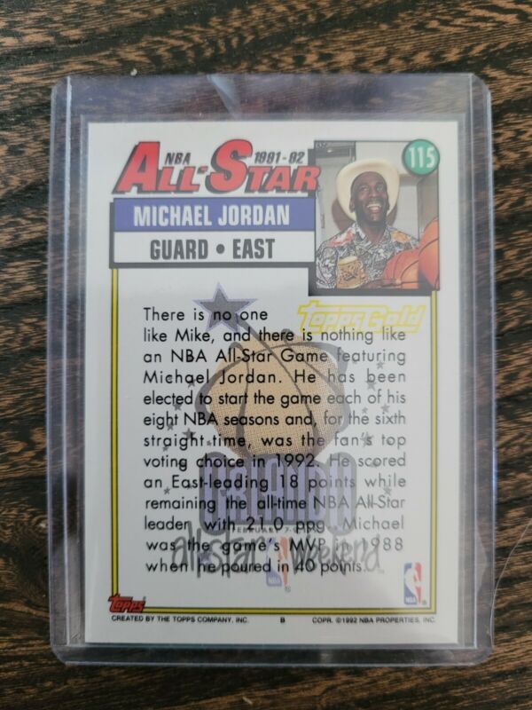 1992 TOPPS MICHAEL JORDAN 115 GOLD ALL STAR BASKETBALL CHICAGO BULLS