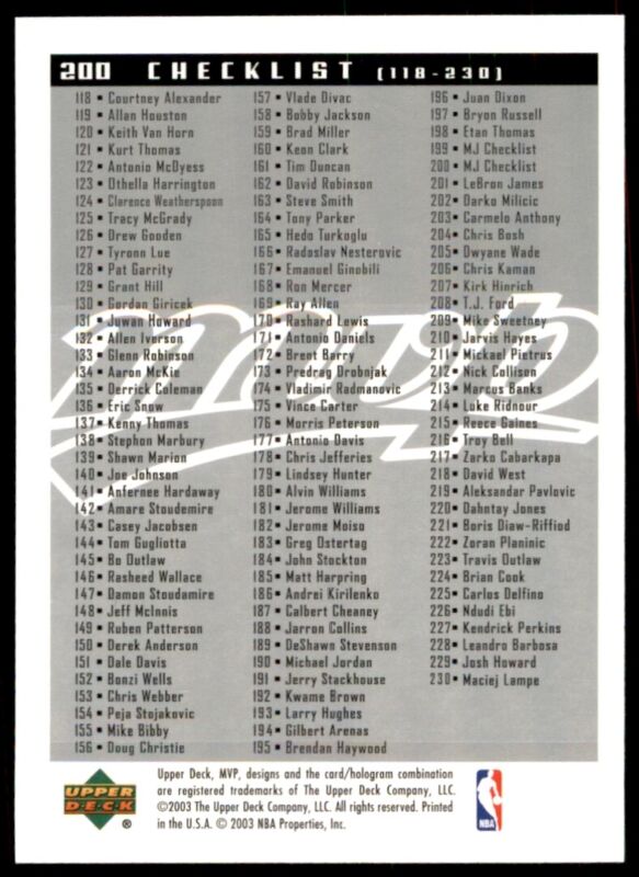 This MICHAEL JORDAN, from the 2003 UPPER DECK MVP set, is in NRMT-MT condition.