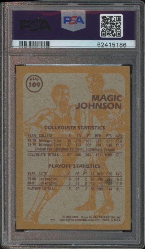1981 TOPPS MAGIC JOHNSON W109 NRMT-MT SUPER ACTION CENTERED PSA 8 LAKERS