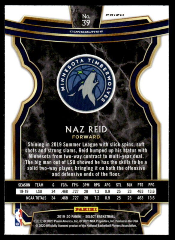 2019 PANINI SELECT NAZ REID 39 PURPLE TEAL PRIZM RC TRI COLOR TIMBERWOLVES