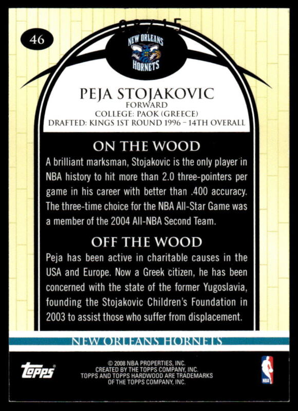 2008 TOPPS HARDWOOD PEJA STOJAKOVIC 46 RED REDWOOD 45153 NEW ORLEANS HORNETS