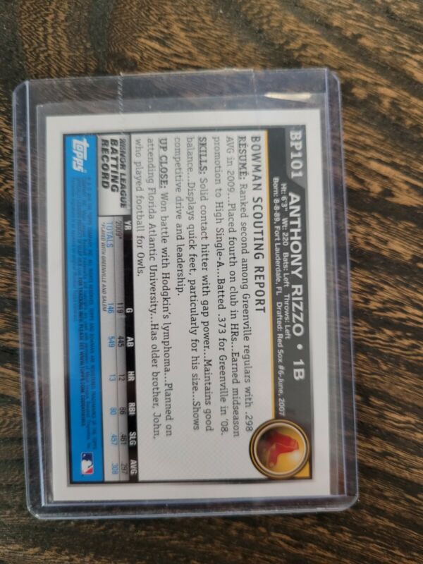 This ANTHONY RIZZO, from the 2010 BOWMAN CHROME set, is in MINT condition.