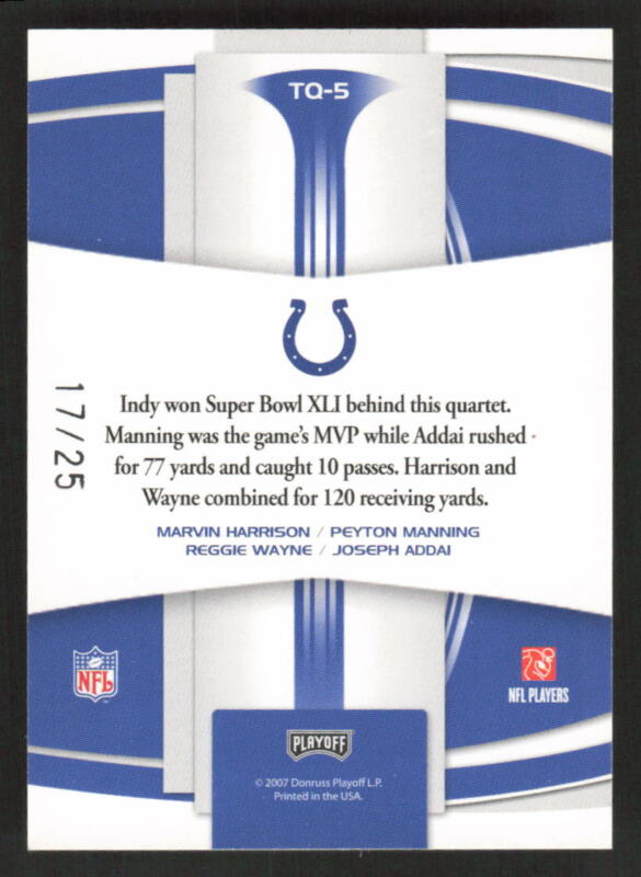 2007 ABSOLUTE PEYTON MANNING TQ-5 TEAM QUADS SPECTRUM HARRISON WAYNE 17/25 COLTS