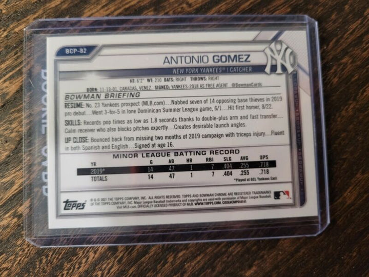 2020 BOWMAN CHROME ANTONIO GOMEZ BASEBALL CARD New York Yankees INVEST