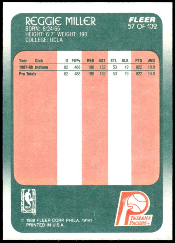 1988 FLEER REGGIE MILLER 57 MINT HOF RC BASKETBALL INDIANA PACERS