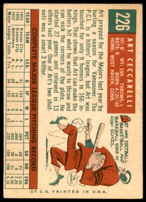 This ART CECCARELLI, from the 1959 TOPPS set, is in EX condition.