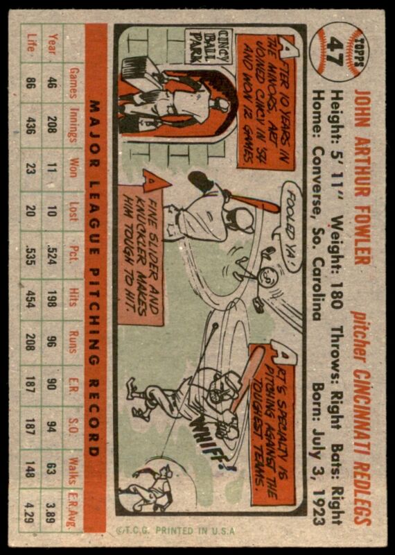 1956 TOPPS ART FOWLER 47 EXMT BASEBALL CINCINNATI REDS